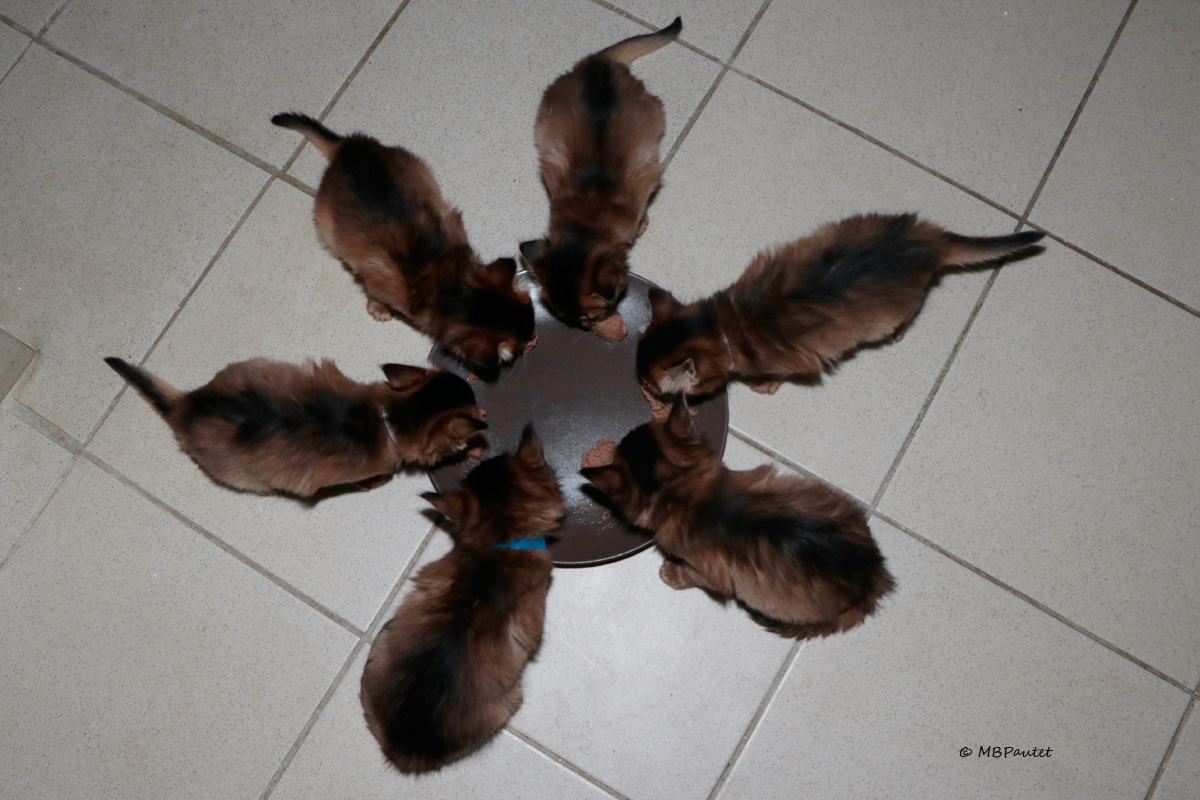 Bien sûr, ils continuent de téter maman, mais pour 6 chatons très énergiques