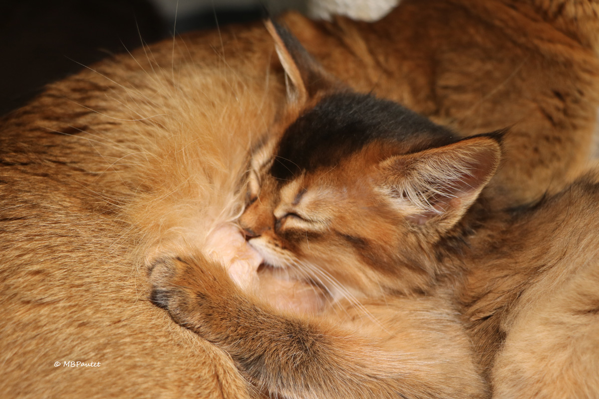 Ca se voit bien sur la photo de droite où elle dort avec son frère M3.