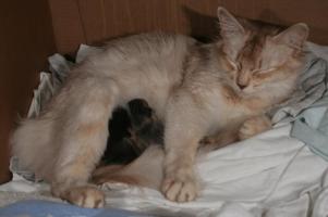 A 2h21 et à 2h33 sont nés deux chatons d'Alaska et Brownie. Maman va bien. Papa aussi...